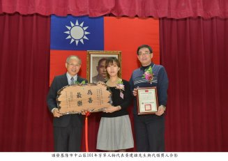 臺灣省政府最近舉辦地方基層芳草人物代表表揚活動中, 黃建雄 先生獲得基隆市中山區公所推薦,在新竹稅務局大禮堂,由省主席林政則親自表揚,並獲頒「為善最樂」匾額乙幀及臺灣省政府表揚狀乙紙, 黃 先生因故未...(詳全文) |